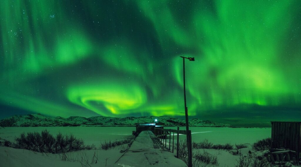 Сияние начинает раскрашивать местное небо начиная с сентября и заканчивая апрелем. Главное условие  — чистое небо.