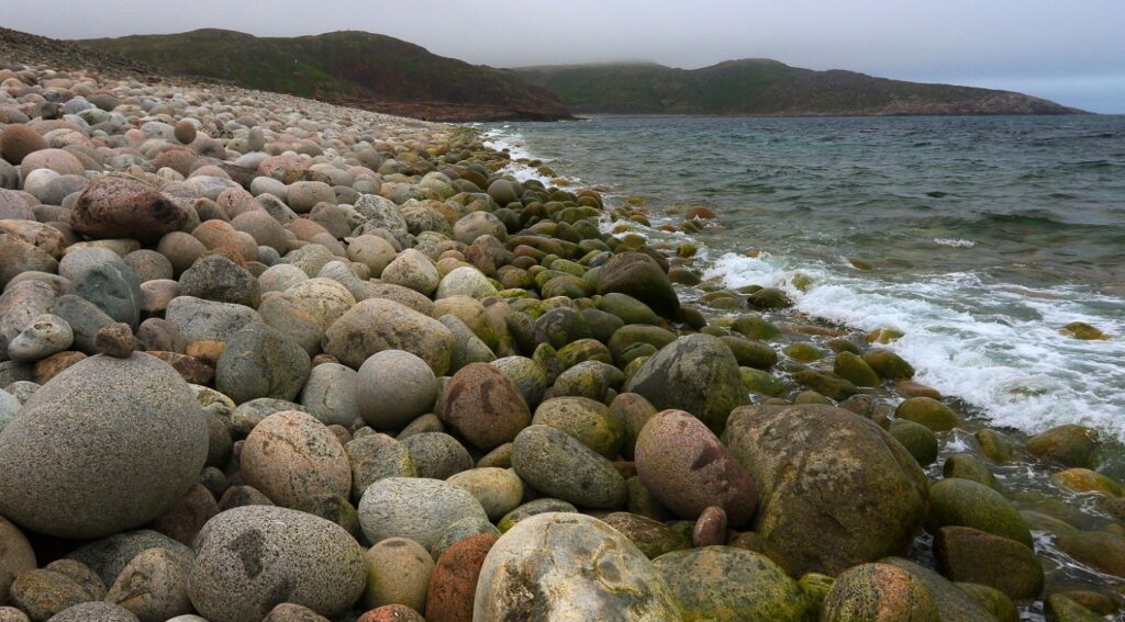 Находится это чудо природы в заповедной зоне. Это место своего рода – «край земли», граничащий с Баренцевым морем. Пляж носит такое название из-за своего уникального вида и округлой формы камней, напоминающих яйца с причудливыми узорами на их поверхности, что создает ассоциацию с яйцами дракона.  Ещё они  меняют цвет в зависимости от времени года: пепельный, зелёный, розовый, оранжевый.