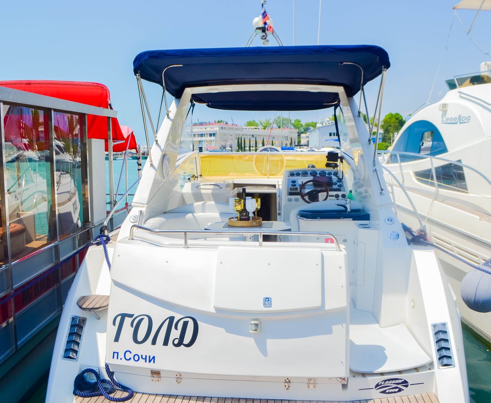 Также есть другие модели яхт, например Flagship excellent 34 (длина 11 метров, ширина 3,3 метра).