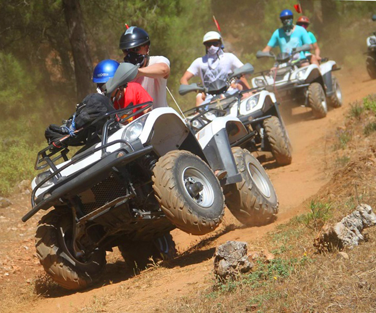 Сначала — гонка по пересечённой местности на мощных багги или квадроциклах. Пыльные дороги, лесные тропы и настоящая свобода!