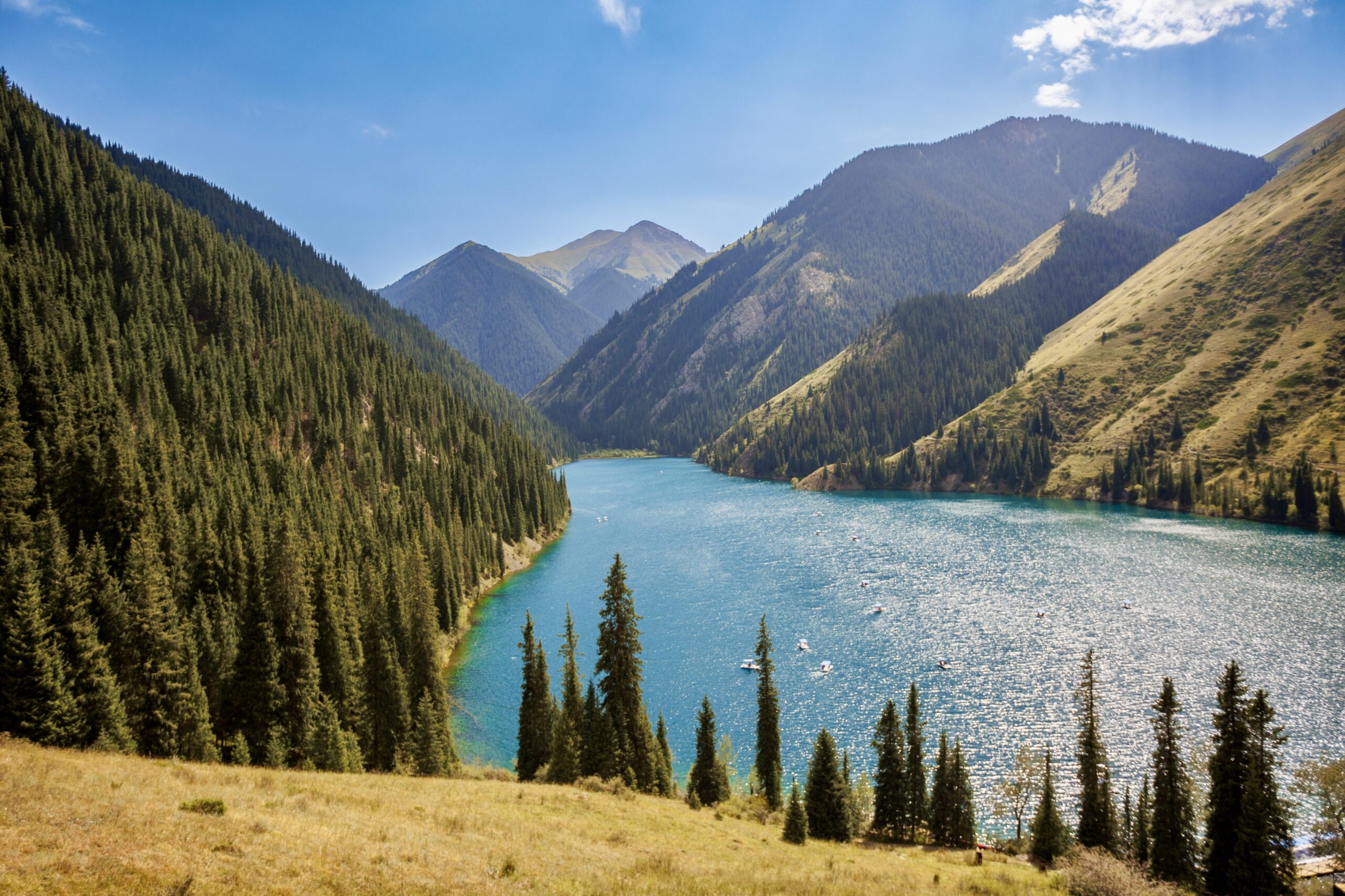 💧 Озеро Кольсай — умиротворяющее горное озеро, окружённое хвойными лесами.