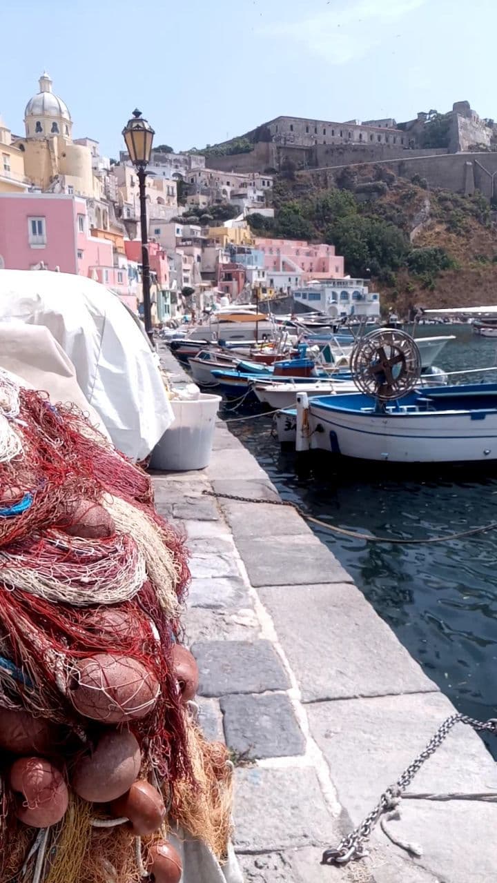 Мы прогуляемся среди рыболовных сетей, рыбацких лодок и разноцветных домиков. Корричеллы — старейший рыбацкий поселок Прочиды, расположенный в виде амфитеатра на берегу моря, смотрится как небольшой рождественский вертеп с неописуемым шармом.