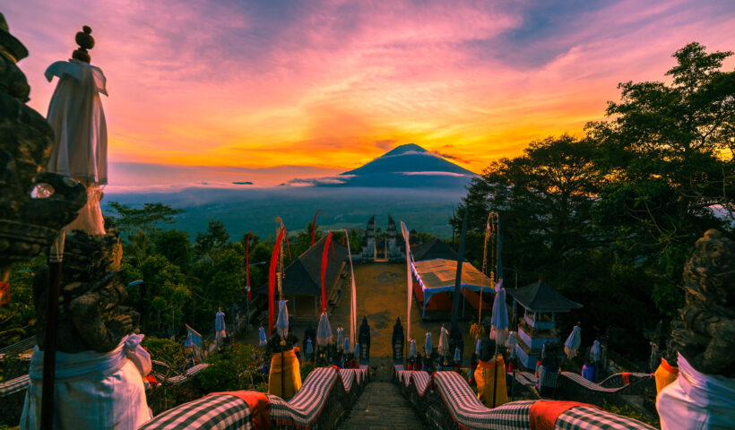Отправляйтесь на восток острова, чтобы увидеть «храм в облаках» и самую высокую гору Бали — вулкан Агунг, прекрасные водные дворцы Тирта Ганга и Таман Уджунг, храм с летучими мышами и пляж с чёрным вулканическим песком.