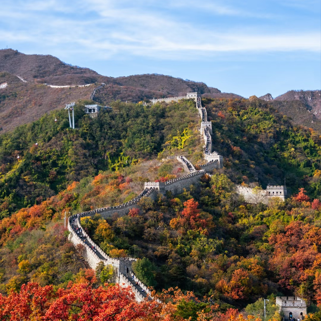 Для подъема на стену доступна канатная дорога или санная дорога (оплачиваются дополнительно). Эти варианты позволяют осмотреть участок стены с разных ракурсов и оценить масштабы сооружения.