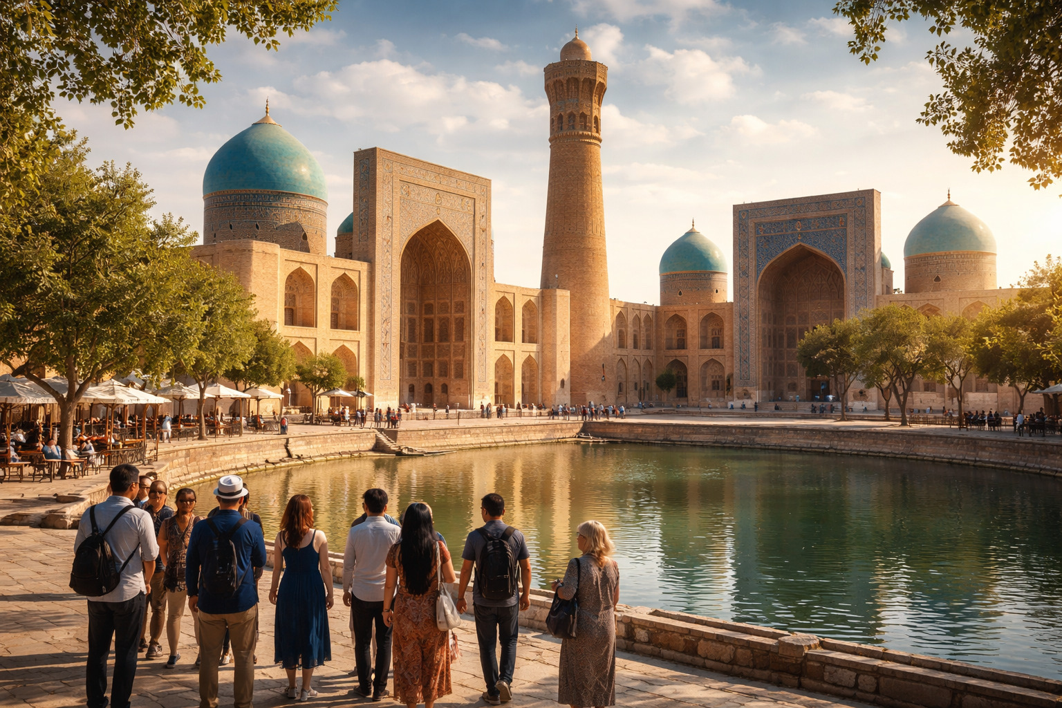 Далее нас ждёт уютный комплекс Ляби-Хауз — место встреч местных жителей и гостей города, где раньше отдыхали купцы и путники караван-сараев. Завершится экскурсия у медресе Чор-Минор — необычного архитектурного ансамбля с четырьмя башнями, ставшего одним из самых фотогеничных символов Бухары.