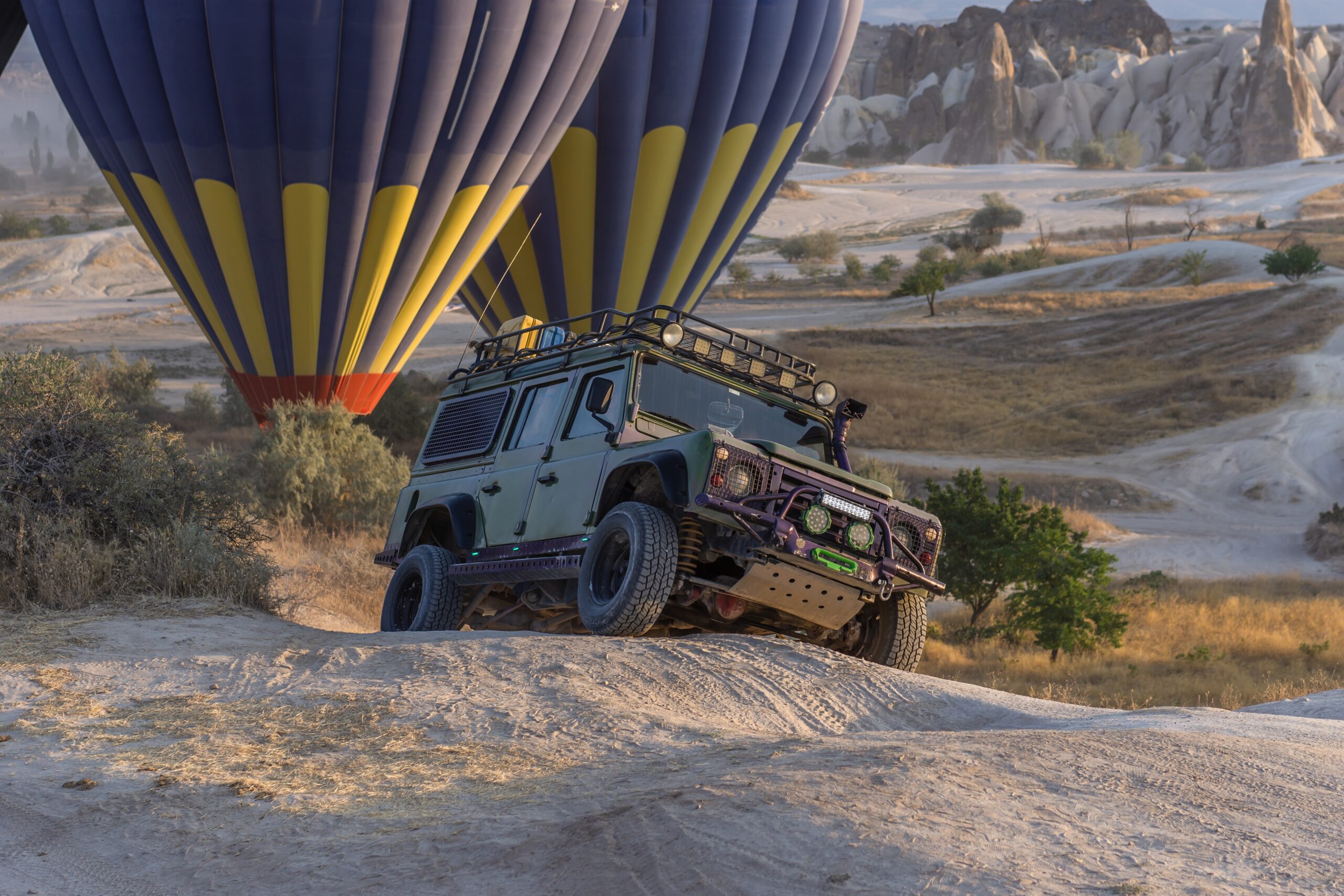 Откройте волшебство Каппадокии на 2-часовом сафари на джипах в часы рассвета или заката. На рассвете вы увидите, как воздушные шары поднимаются в золотом утреннем свете, а волшебный закат подарит романтические пейзажи долин в теплых тонах. В программе: Долина Любви, Долина Роз и панорамные виды Гёреме.