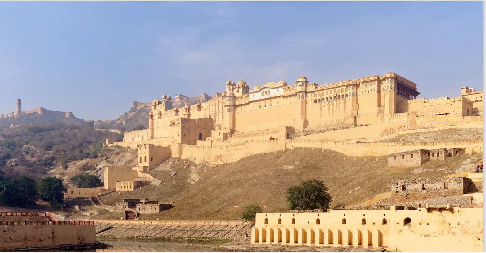Во время остановки будет возможность сфотографировать красивый Хава Махал-известный как «Дворец Ветров». Этот красивый фасад с многочисленными резными решетчатыми окнами был разработан таким образом, чтобы дамы дворца могли смотреть на улицу, оставаясь незамеченными. Дальше посещение дворца Сити или Городской Дворец Джайпура находится в самом центре Старого города и представляет собой комплекс внутренних двориков, садов и зданий. Внешняя стена была построена Джай Сингхом, но после этого в течение нескольких веков дворец расширялся и видоизменялся. Несмотря на постепенное развитие, в целом, дворец представляет собой поразительное сочетание раджастханской и могольской архитектур.