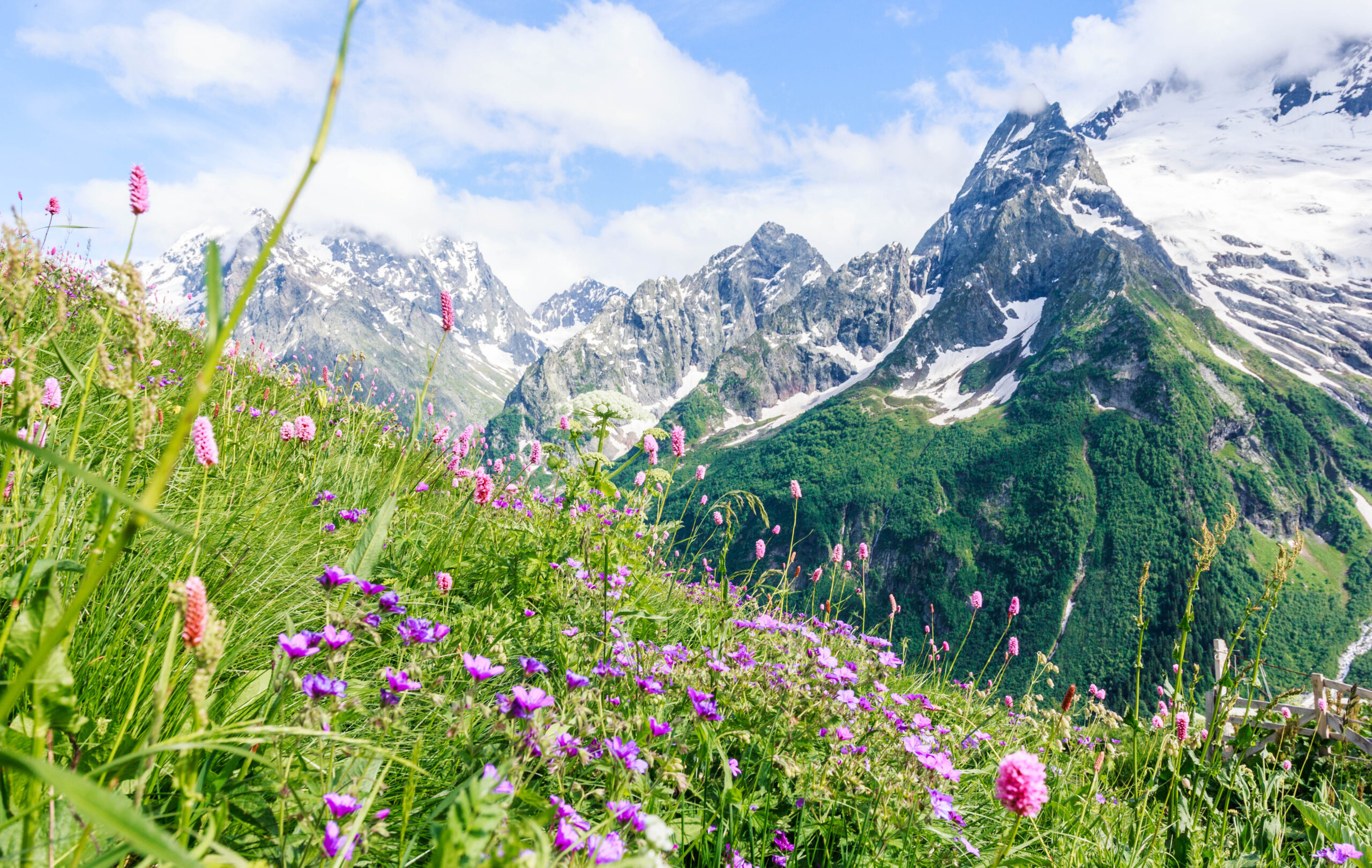 Домбай — небольшой поселок среди Кавказских гор на высоте 1300 метров. Ежегодно сюда приезжают сотни любителей горнолыжного спорта. Ну а мы отправимся на исследование природных красот.
