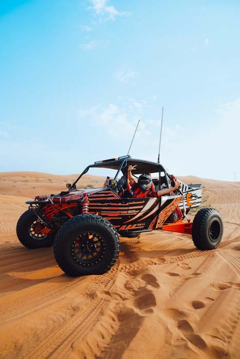 Вы отправитесь колесить по просторам пустыни Дубая на монстре-багги — необычном мощном квадроцикле. Находясь за рулём или в качестве пассажира, вы помчитесь по дюнам, рассекая воздух, и испытаете море адреналина! Наши инструкторы будут рядом, чтобы сделать эту поездку максимально увлекательной и безопасной.