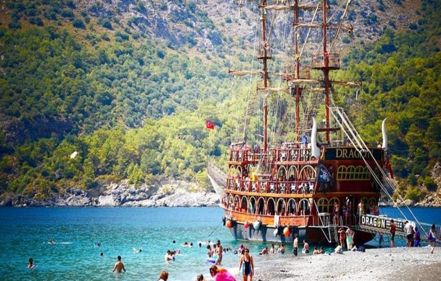 Мы отправляемся из отелей рано утром, после полуторачасовой поездки у нас будет перерыв на завтрак «шведский стол» в ресторане в деревне Бекджилер. Далее продолжим путь до яхты на пляже Олюдениз. Пересядем на яхту и через 40 минут, мы на месте — в долине бабочек, где вы спокойно проведете время в приятных, тихих бухтах.