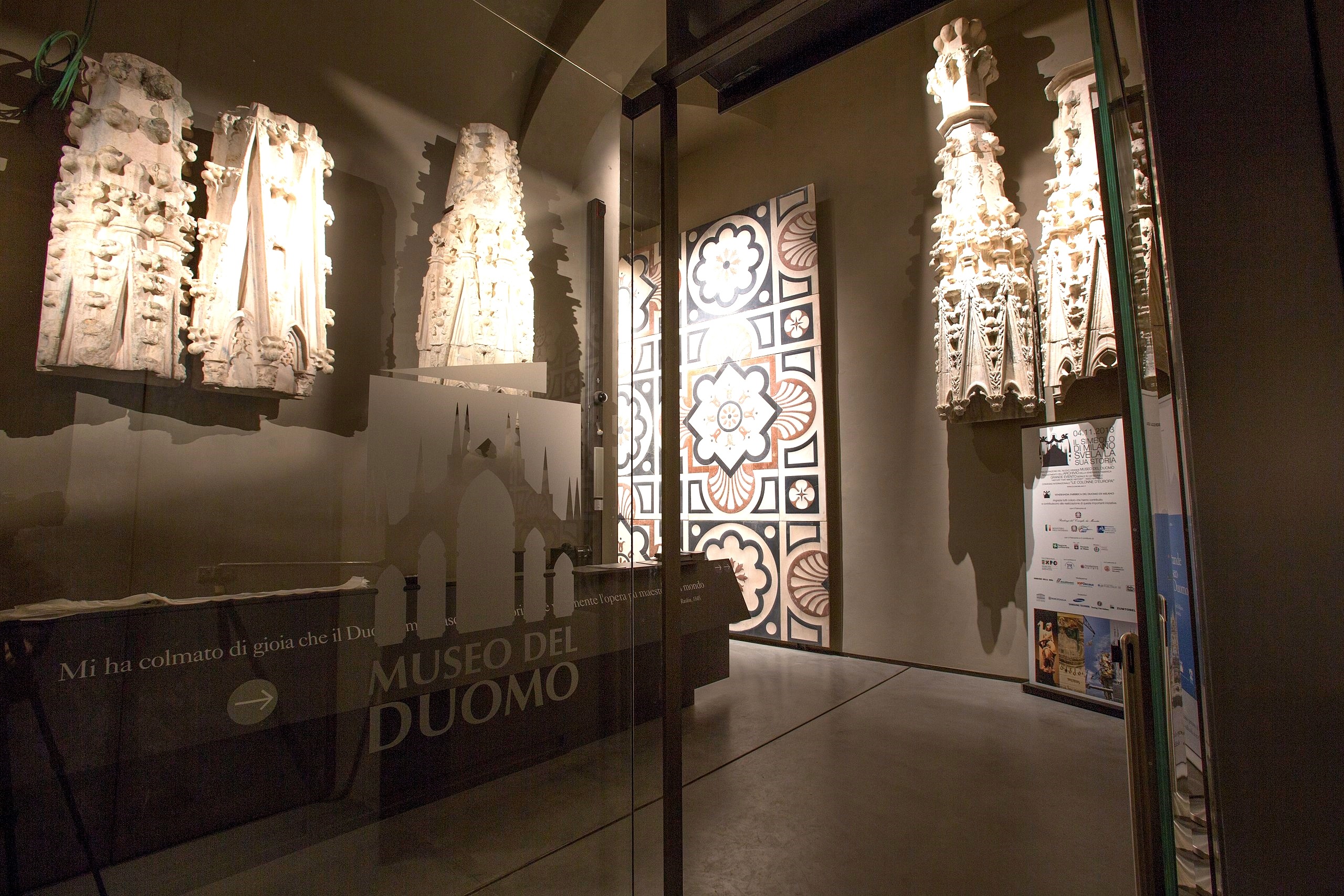 Самым грандиозным и впечатляющим сокровищем экспозиции является колоссальный макет (из резины и мраморной крошки) фасада флорентийского собора, начатого Арнольфо ди Камбио в 1296, так никогда и не законченного и затем уничтоженного в 1587, в главном зале музея. Для его украшения были собраны около 40-ка скульптур треченто и раннего кватроченто, в том числе знаменитые «Мадонна со стеклянными глазами» самого ди Камбио и «Святой Иоанн-богослов» Донателло, послуживший вдохновением для Микеланджело, при создании «Моисея». «Зал Рая» и новый Музей Собора способны поразить своим священным великолепием даже самых равнодушных к искусству людей!