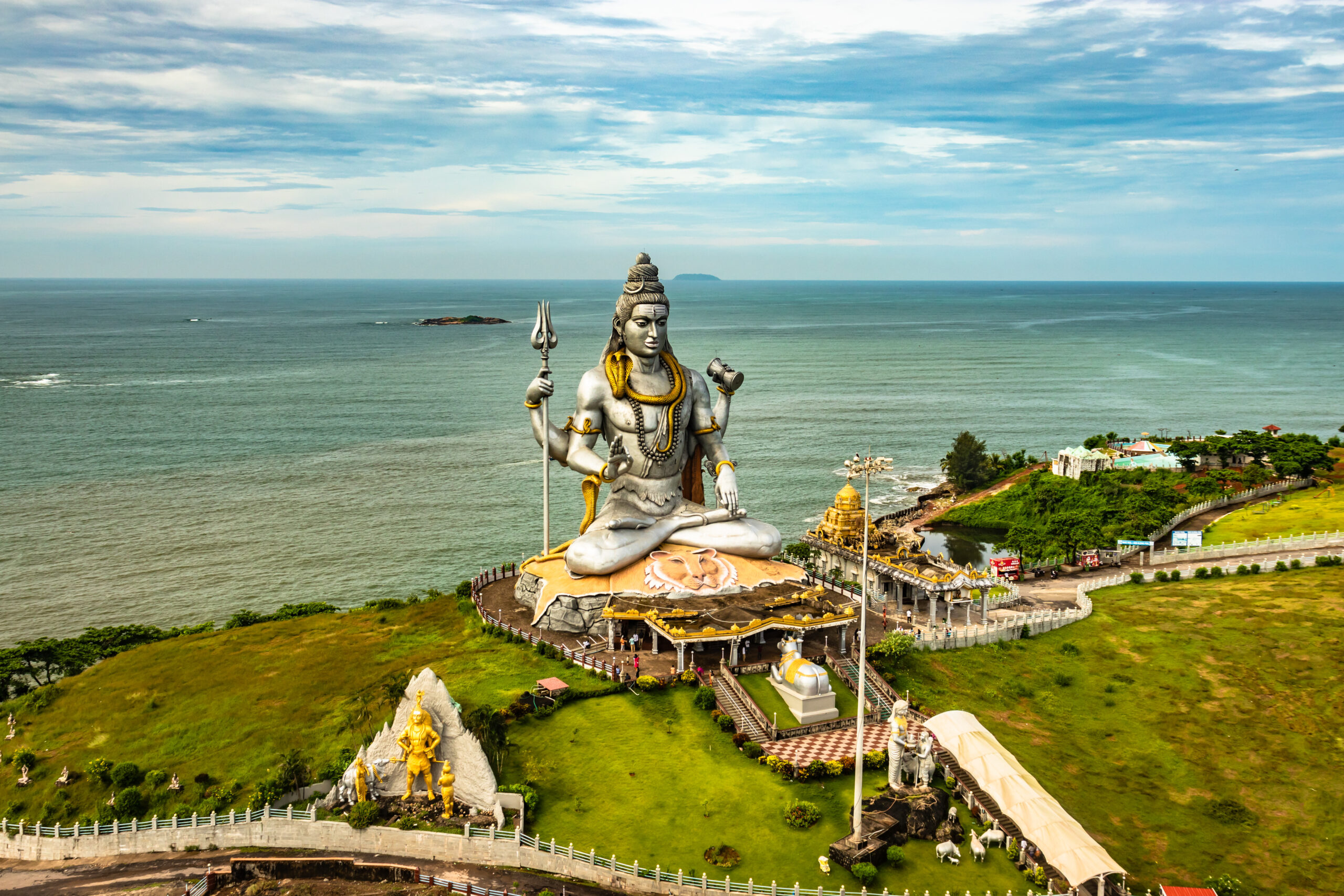 Здесь на холме возвышается одна из крупнейших статуй Шивы в Азии. Высокая башня Раджа-Гопура оборудована лифтом: со смотровой площадки открываются панорамы океана и побережья. На территории работает небольшой музей мифологии с диорамами, где священные сюжеты оживают.
