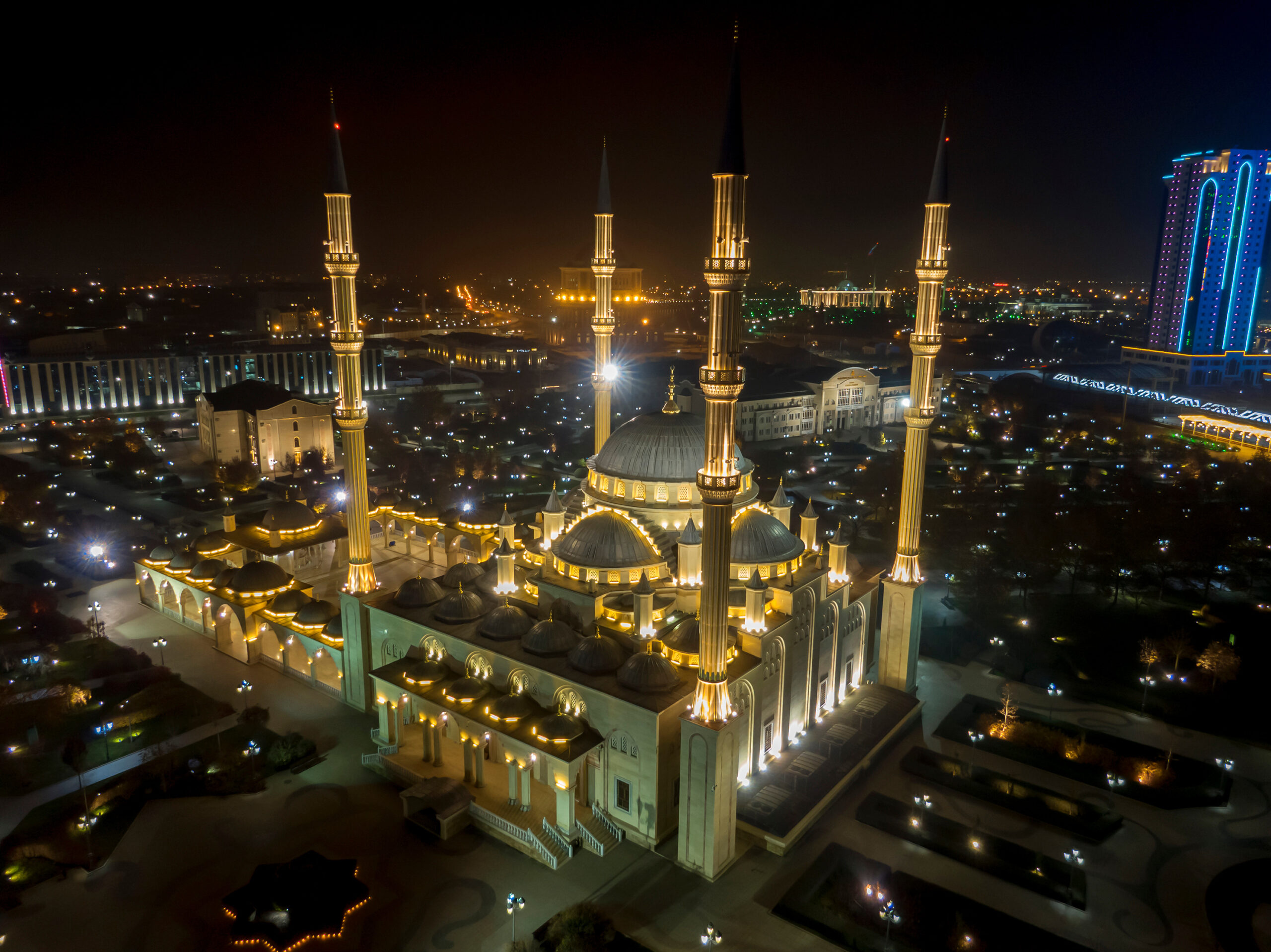 Начнем мы нашу экскурсию с мечети «Сердце Чечни» в г.Грозном,далее направимся в г.Аргун,где находится единственная мечеть в стиле хай-тэк в России-Мечеть «Сердце Матери» им.А.Н.Кадыровой.