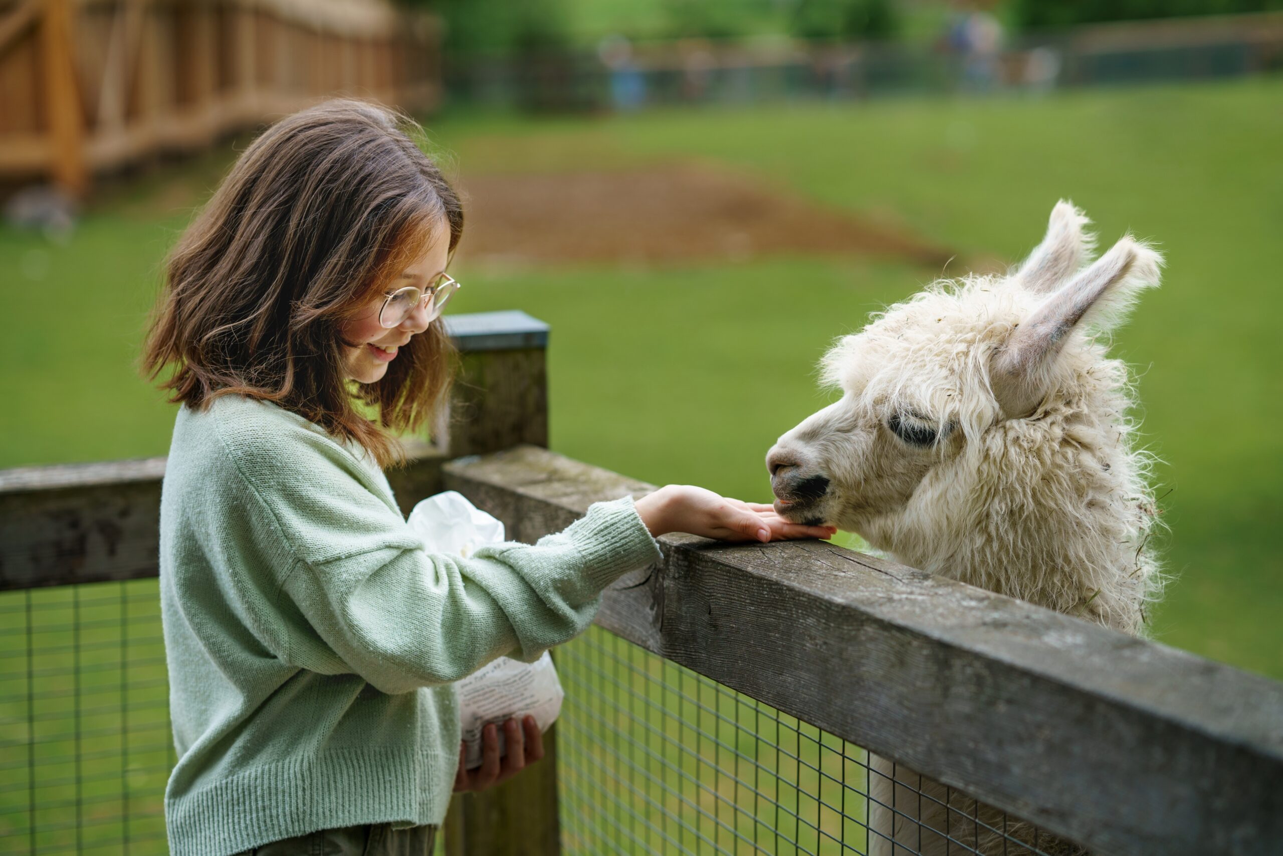 Альпаки с удовольствием примут угощения из ваших рук, и вы получите огромное удовольствие, наблюдая, как они с аппетитом лакомятся морковкой. Время, проведённое с этими милыми животными, подарит вам улыбки, тепло и незабываемые впечатления, которые останутся с вами навсегда!