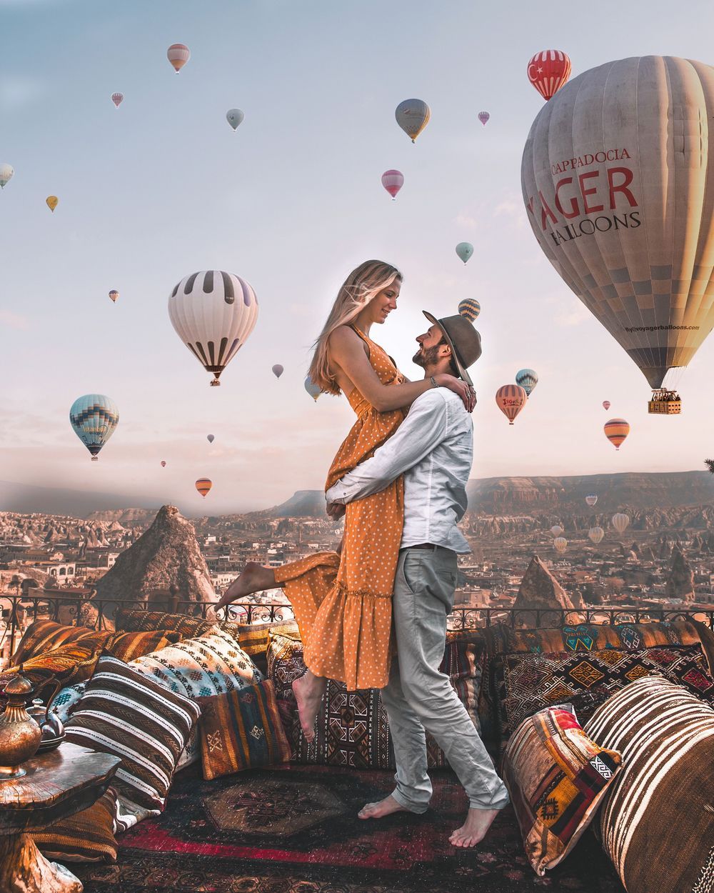 Восход солнца над Каппадокией — это настоящее волшебство. Полет на воздушном шаре подарит вам возможность увидеть, как утренний свет озаряет долины и скалы, окрашивая их в золотистые и розовые оттенки. А для тех, кто предпочитает оставаться на земле, мы организуем визит на панорамную площадку, где вас ждет возможность сделать незабываемые кадры.