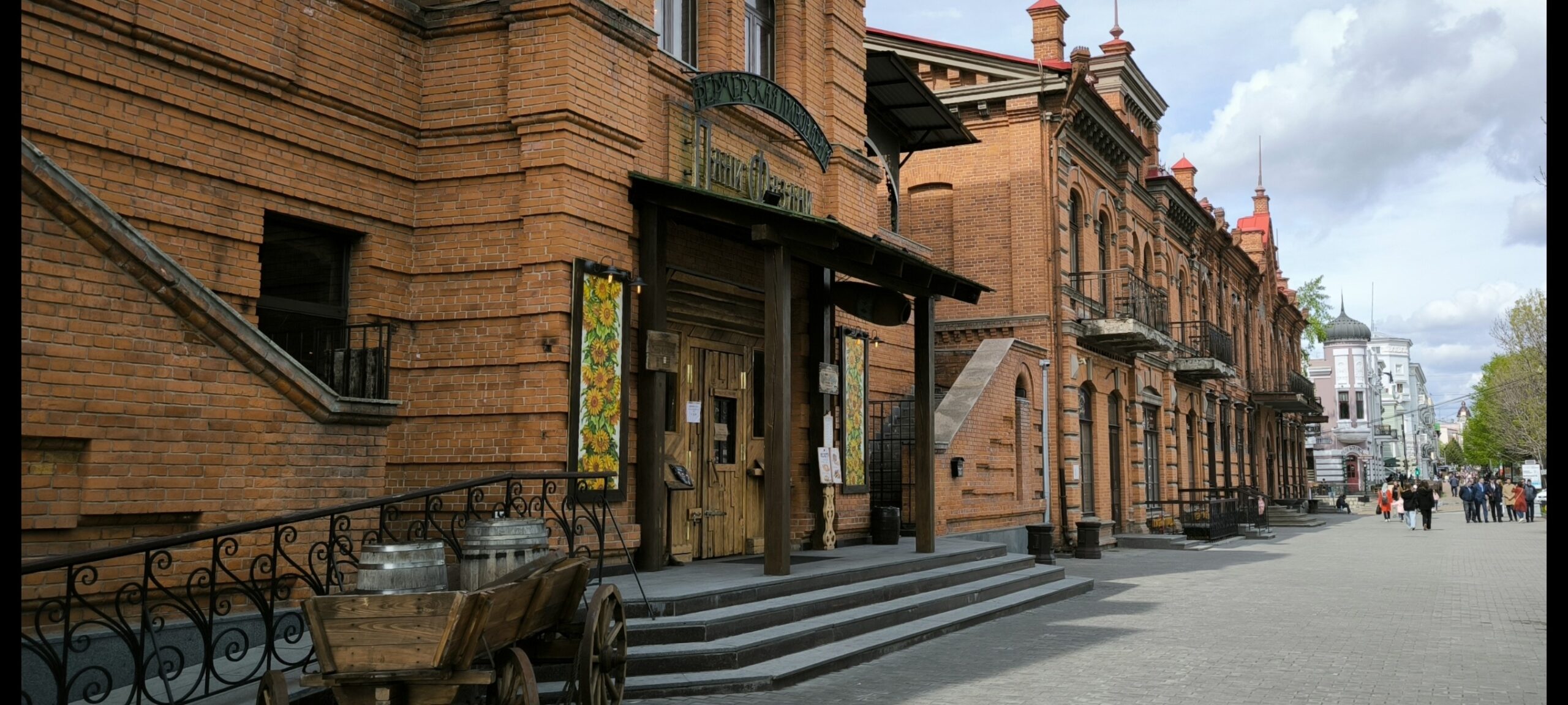 Вас ждёт увлекательное путешествие по главной улице Хабаровска. Здесь расположились самые старые и красивые дома, сочетая в себе несоединимые архитектурные стили. Здесь находятся самые яркие памятники хабаровского кирпичного узорочья — визитной карточки города. Здесь переплелись судьбы русских и китайских купцов, немецких предпринимателей, японского промышленника и фотографа, итальянского кинопрокатчика и первых хабаровских виноделов.