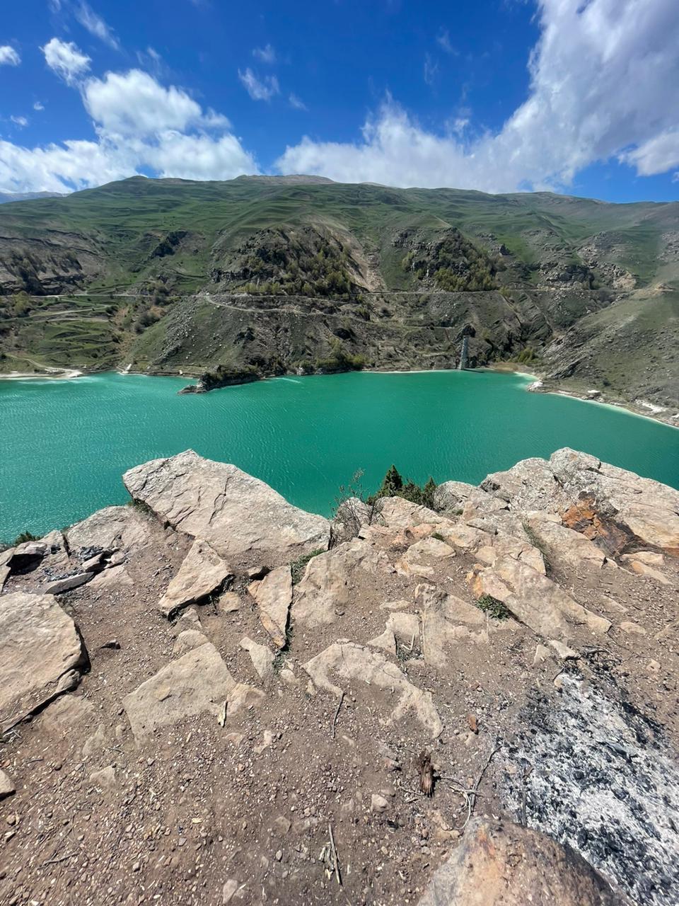 * Заедем полюбоваться изумрудным озером Гижгит, окруженным зелеными холмами.Озеро это не с простой историей,раньше являлось отстойником Тырнаузского вольфрамового завода,и имело в своих водах всю таблицу Минделеева,но сейчас многочисленные исследования и пробы воды говорят о том ,что озеро даже пригодно для купания,чем еще подтверждается данный факт-там водиться чистолюбивая рыбка-Форель.Но купаться там, мы не будем,поедем на известные термальные источники этой республики.