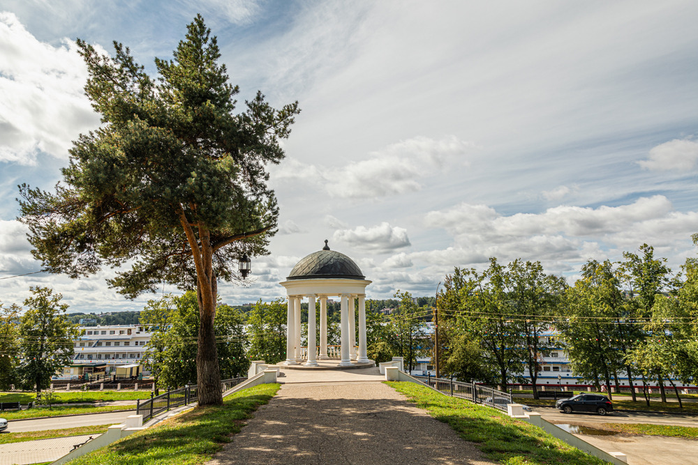 Из беседки Островского открывается прекрасный вид на реку. Полюбуемся пейзажами из ажурной белокаменной ротонды и поговорим о том, как жизнь великого драматурга была связана с Костромой.