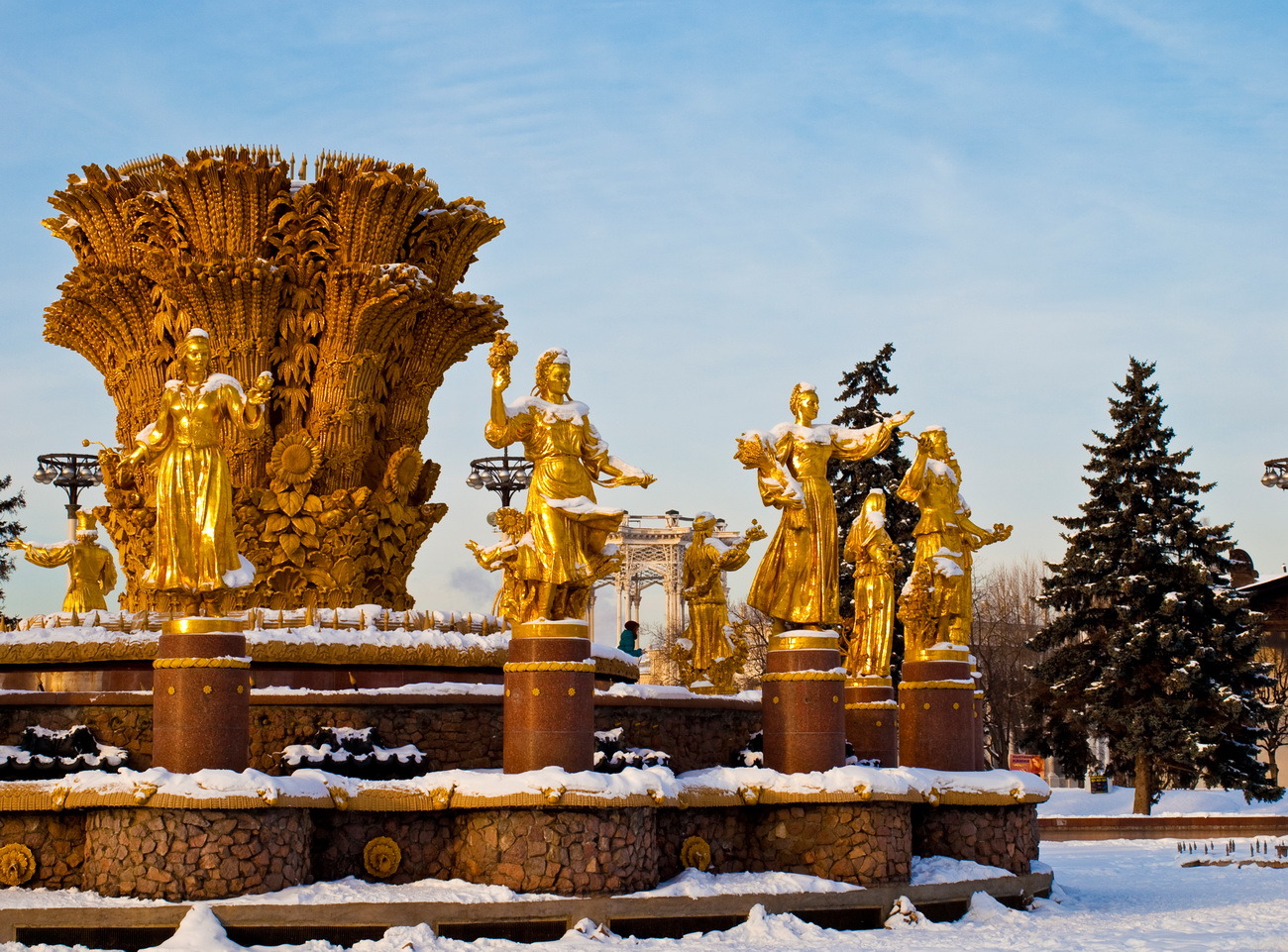Особое внимание уделим фонтанам — «Дружба народов», «Каменный цветок» и «Золотой колос», которые стали символами выставки.