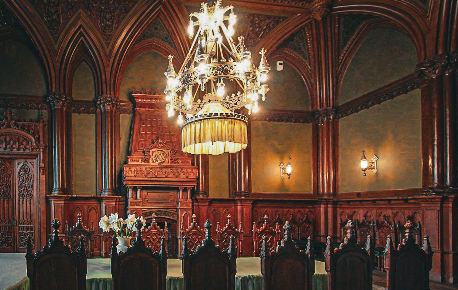 - посетим торжественный белый зал, оборудованный потайным лифтом для слуг.