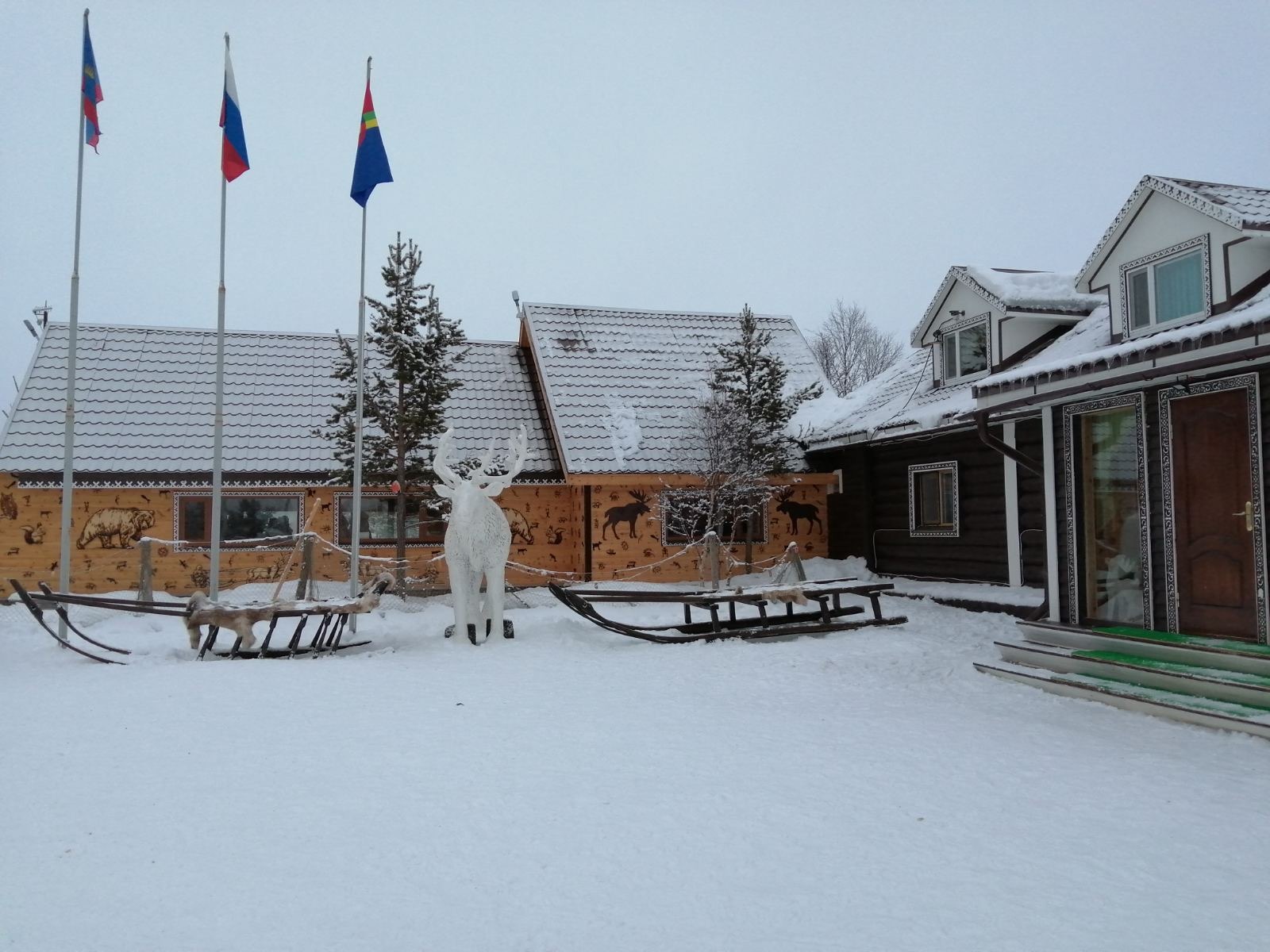 Вас ждут веселые хаски, с которыми можно пообниматься, а еще песцы, лисы, еноты, кролики, и конечно, северные олени. Вы сделаете замечательные фото с оленями, а так же прокатитесь на оленьей упряжке.