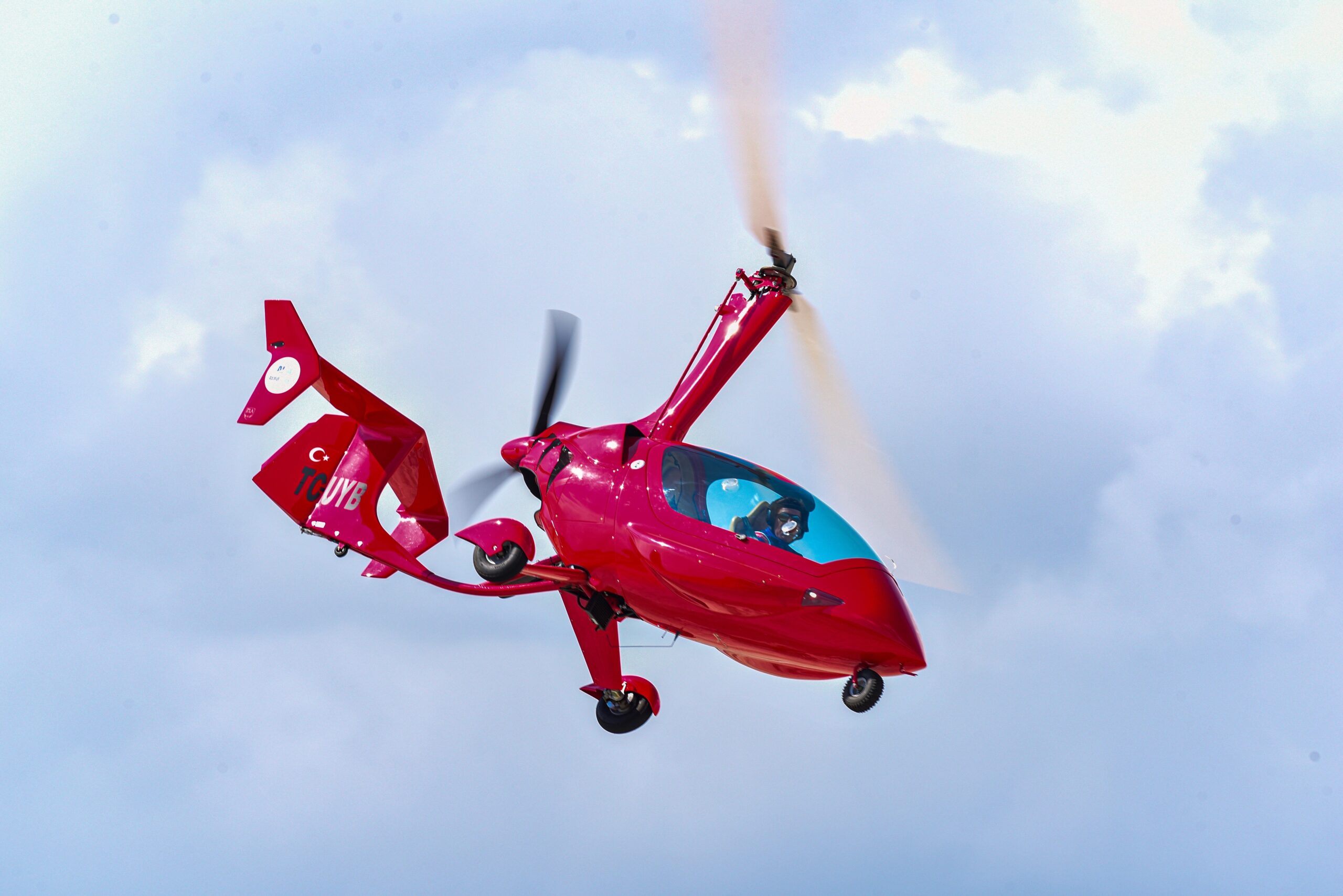 В гирокоптере — только пилот и один пассажир.Одновременно может лететь до 3 гирокоптеров.