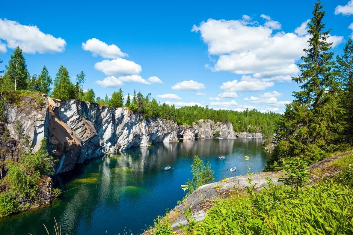 После небольшого переезда мы окажемся у Рускеальского каньона. Здесь вас ждет 1-часовая пешая экскурсия вокруг карьера, затопленного изумрудной водой. Если летом по нему катаются на лодках, проезжают над ним на троллее и занимаются дайвингом, то зимой здесь проводят концерты и другие мероприятия. Кроме того, вам расскажут об истории каньона и о памятниках архитектуры, построенных из добытых здесь глыб.