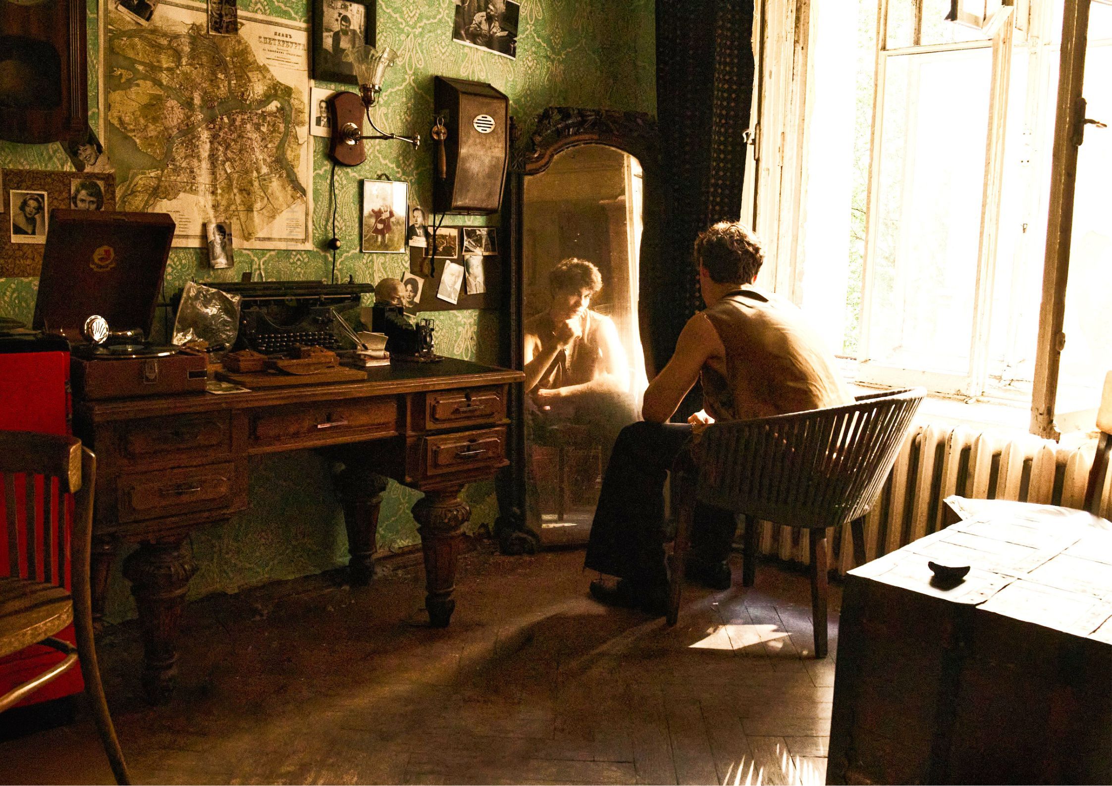 Главная остановка — комната Довлатова: тот же письменный стол, не-любимые им обои и байки о портвейне с Бродским.