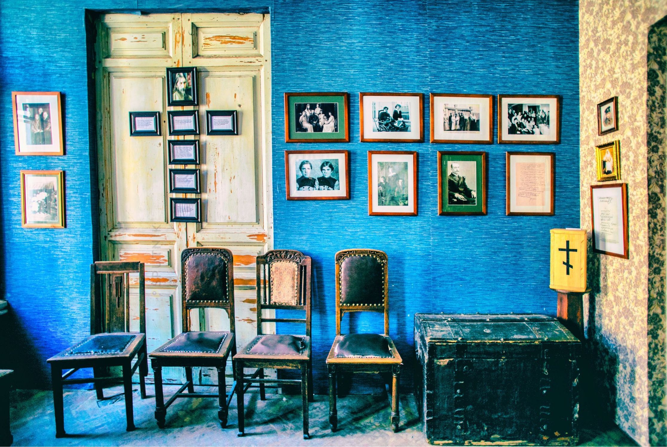 Вы заглянете в «Синюю комнату» — кабинет старца, увидите тот самый чёрный ход, по которому Распутин ушёл к своей судьбе в Юсуповский дворец.