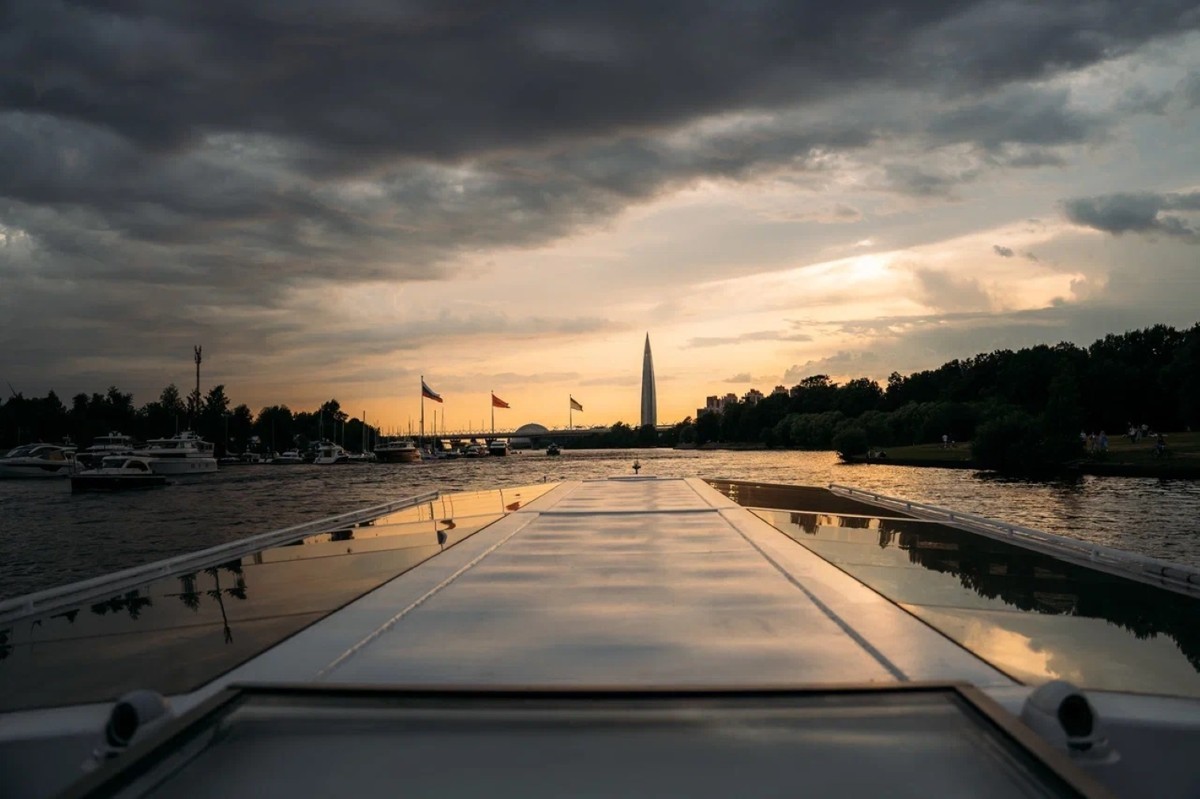 Во время захода солнца, когда небо озаряется яркими красками, Петербург наполняется особой атмосферой романтики и спокойствия, особенно если оказаться в этот момент на борту теплохода в Финском заливе.