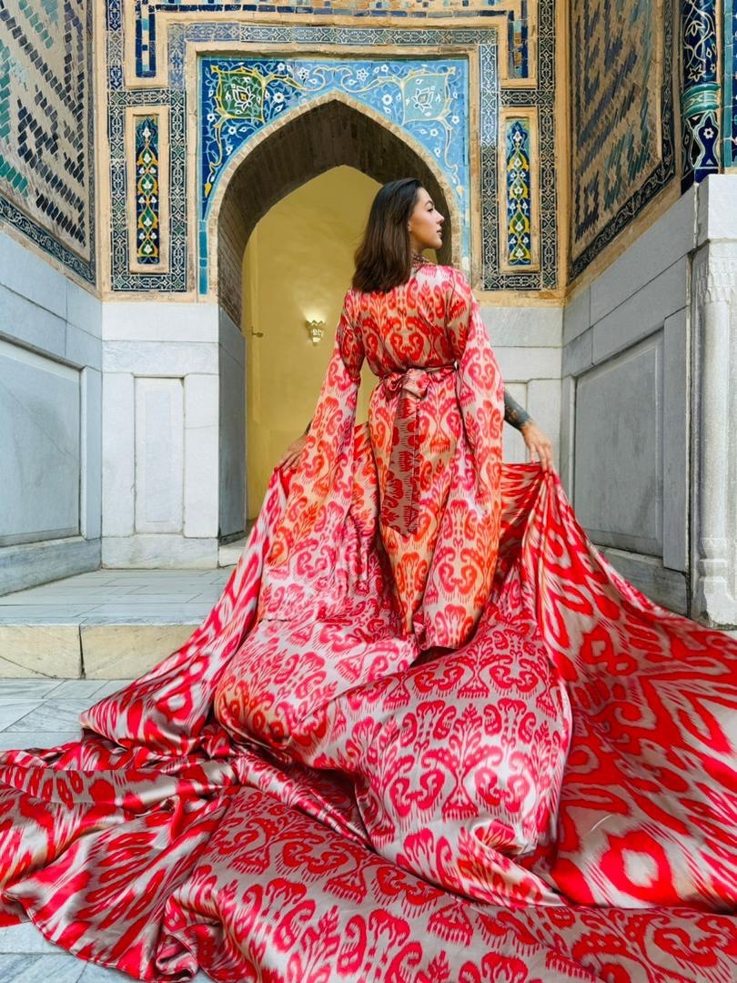 Фотосессия в национальных нарядах на главной площади Самарканда.