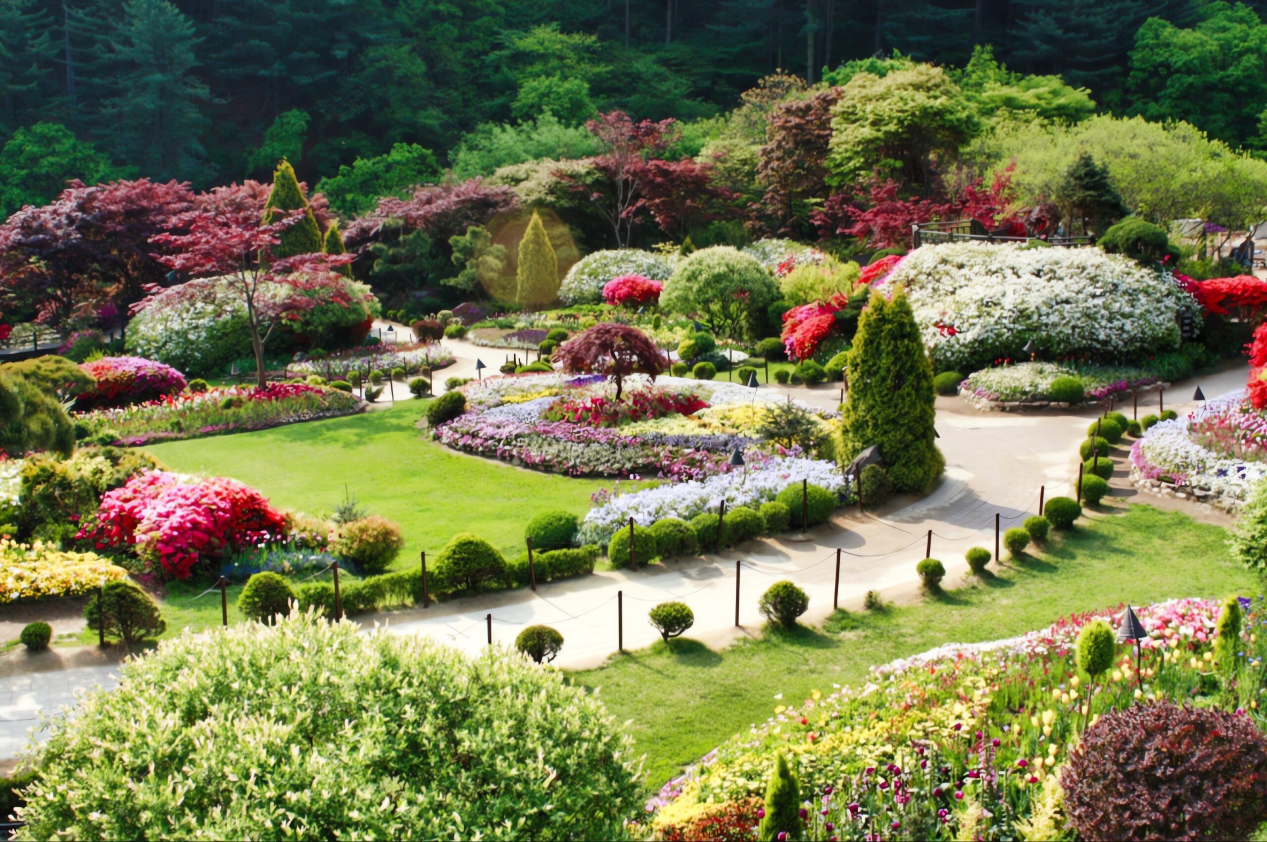 В дендрарии Ачим Коё (Сад утреннего спокойствия / The Garden of Morning Calm) можно почувствовать всю красоту корейской природы. Огромная территория дендрария состоит из 10 тематических садов, в которых растёт около тысячи разновидностей цветов и деревьев.
