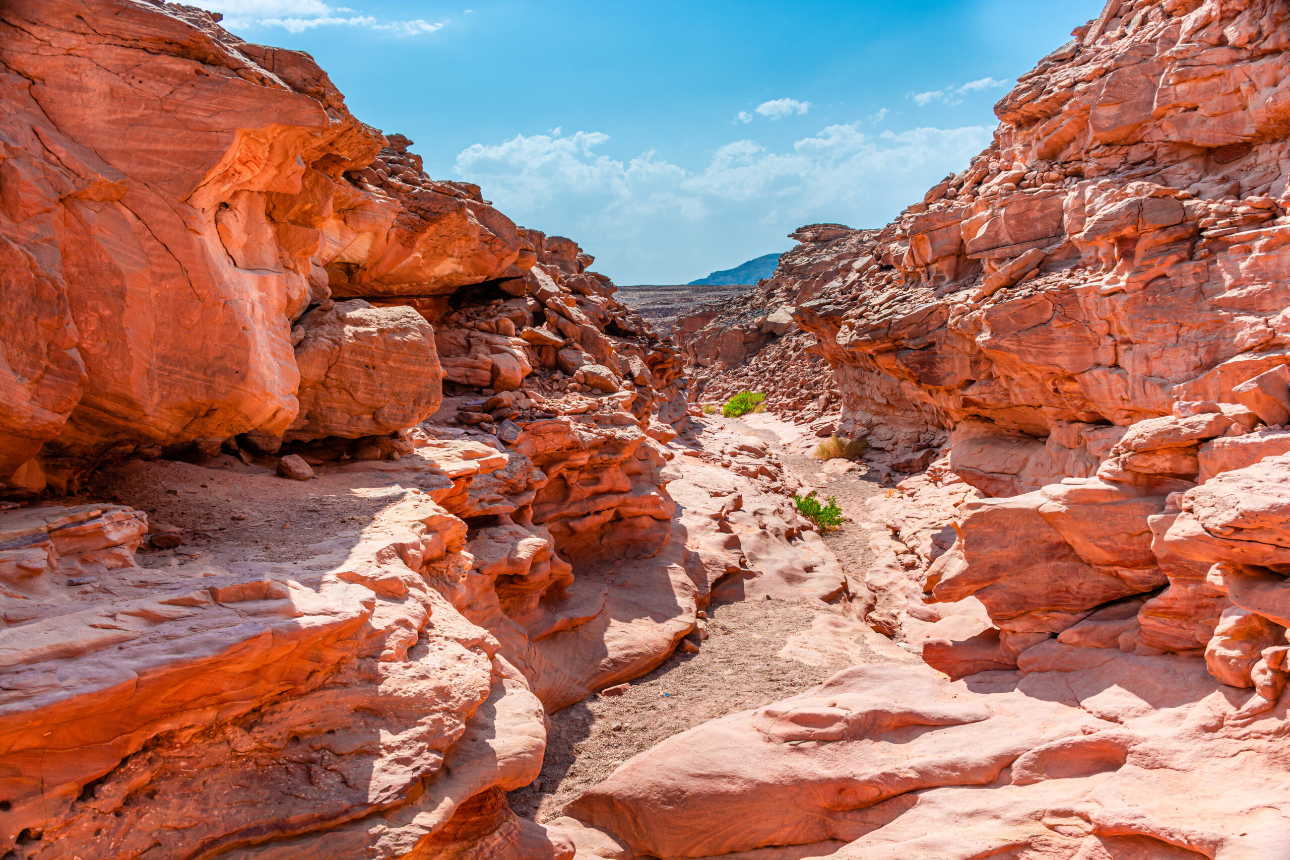 Наша экскурсия начнётся с сафари к каньону Салама в 150 километрах от Шарм-эль-Шейха. Бездорожье внесёт в нашу программу нотки экстрима, зато в каньоне перед вашими глазами предстанут необыкновенные разломы и узоры на скалах, которые возникли благодаря силам природы — течению воды и землетрясениям.