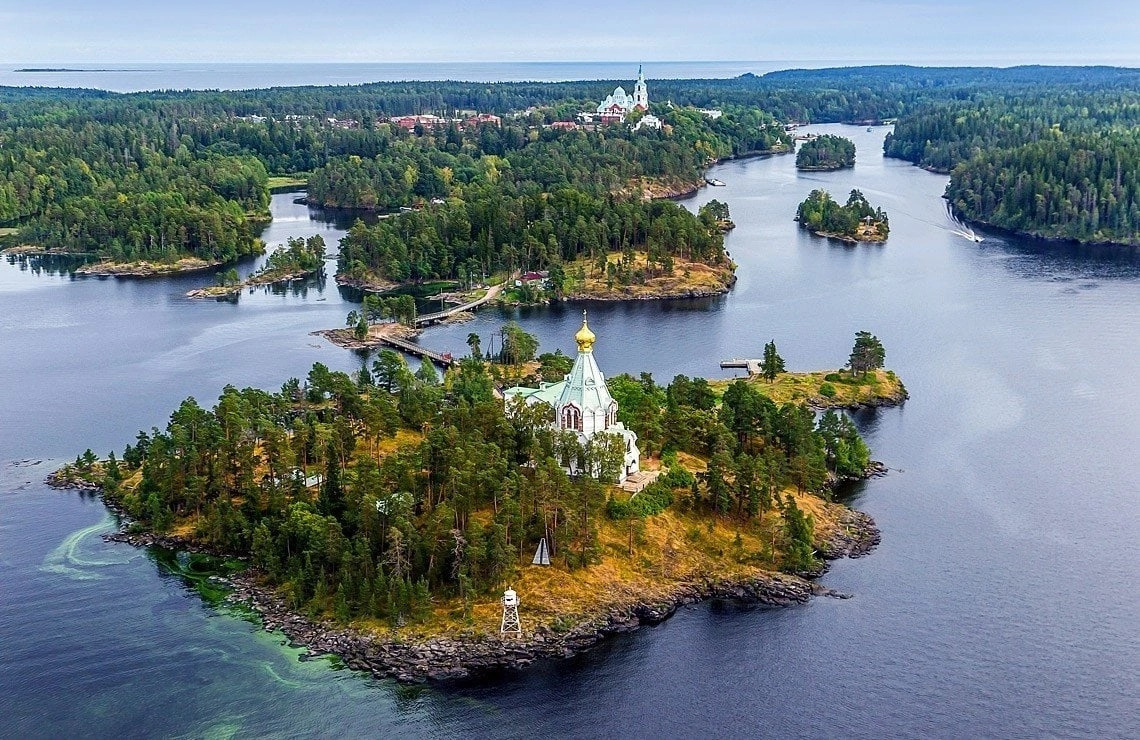 • Спустя 1 час мы прибудем на остров Валаам — жемчужина Ладожского озера. Нас сразу встретит Никольский скит и храм, который расположился при входе в Монастырскую бухту острова.