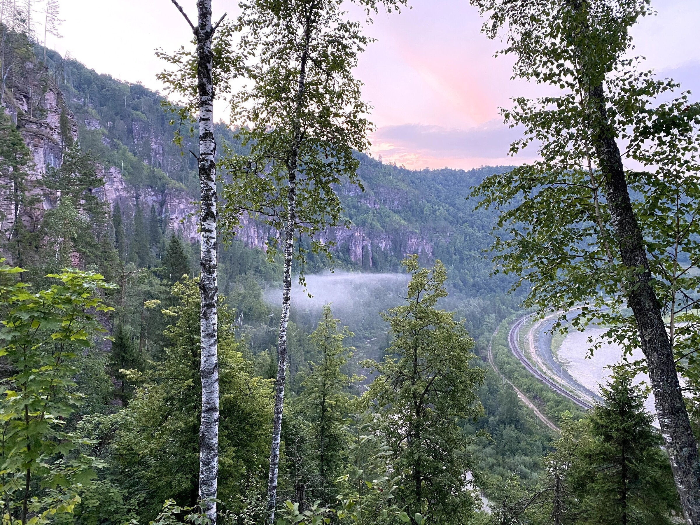 Поднимаясь на вторую смотровую площадку, поймете, что Розовые скалы становятся еще чуть ближе. Площадь обзора увеличится и станет видно, как далеко простирается лесной массив. Нумерация смотровых условная, так как любая тропа, которая уходит вправо от основной тропинки, ведет к обрыву.