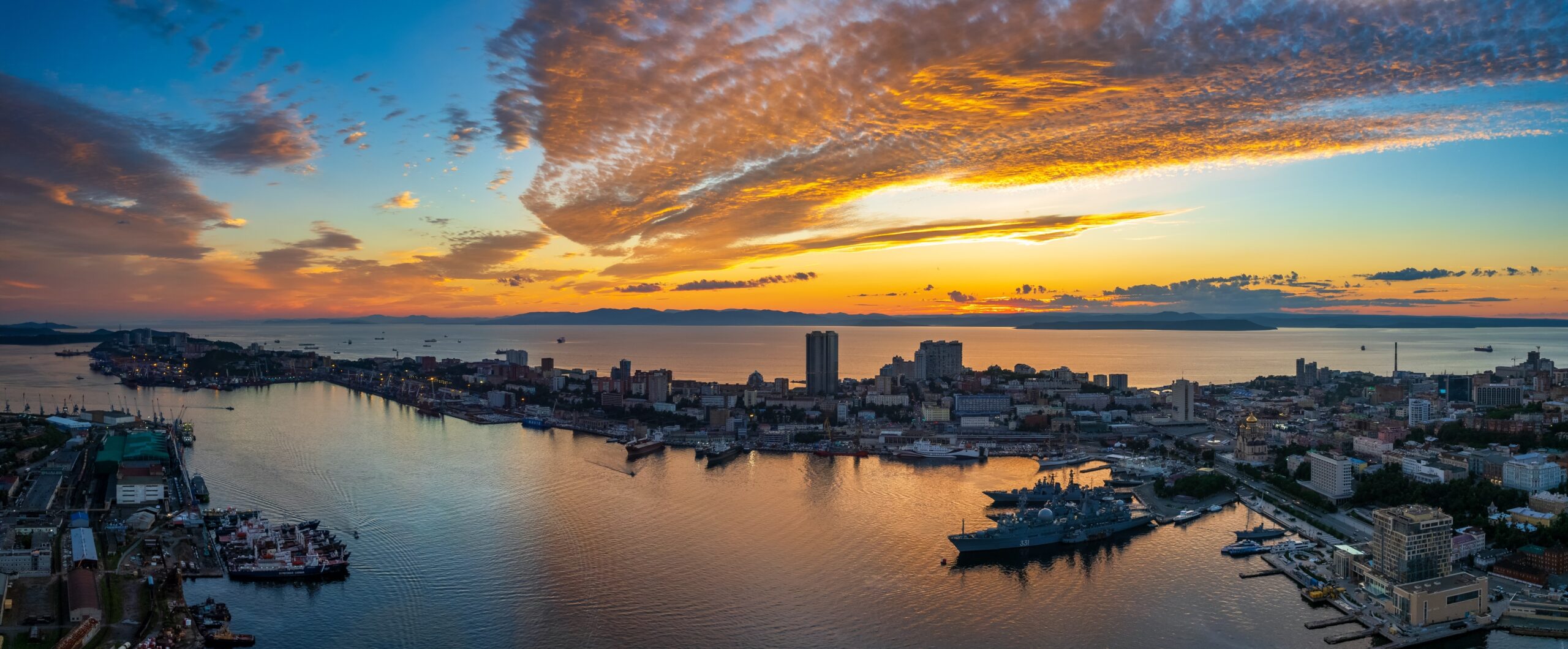 Панорама сияющего вечернего Владивостока