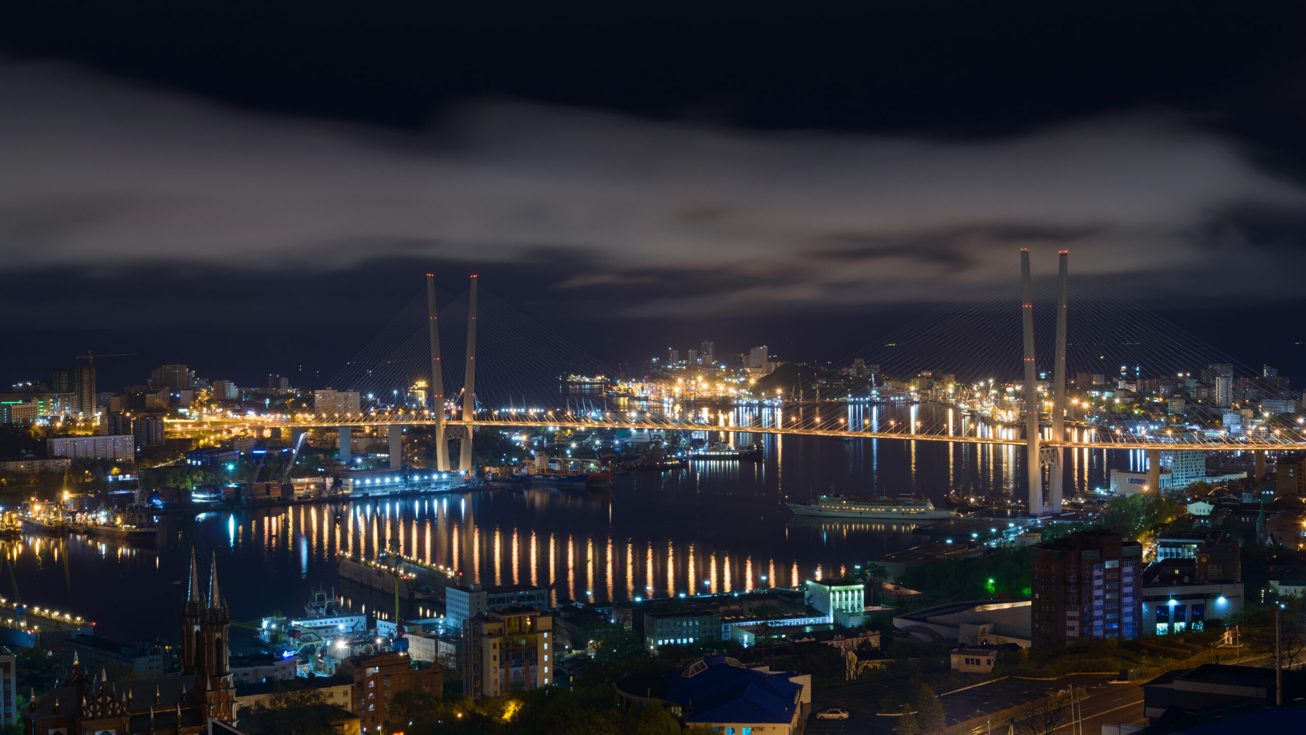 • бухту Золотой рог в огнях,