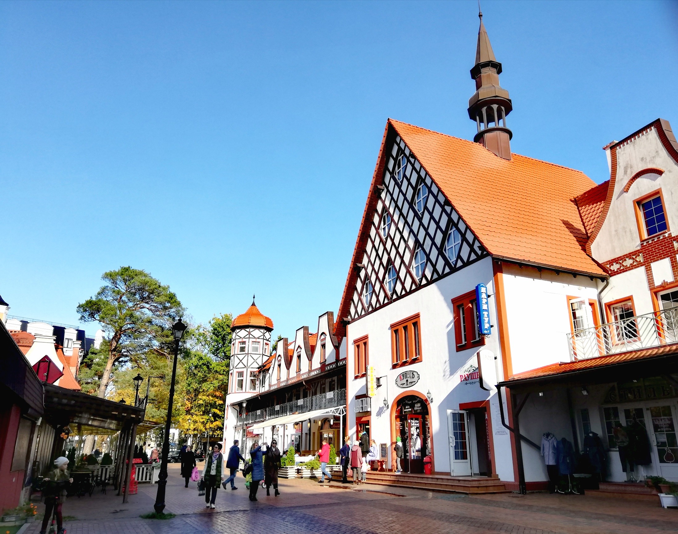 В Светлогорске природа и архитектура сливаются воедино: город органично вписан в густой хвойный лес. Сосны окружают жилые здания и гостиницы, наполняя воздух свежим смолистым ароматом, который мягко смешивается с прохладным морским ветром.