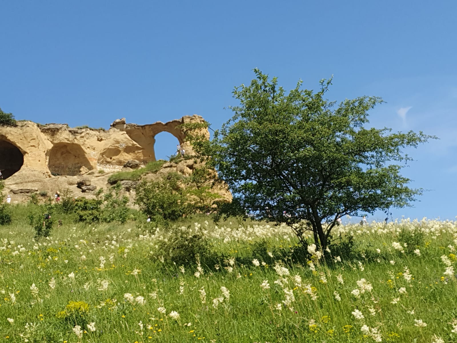 Затем вы совершите таинственный спуск в Аликоновское ущелье к великолепным искристым Медовым водопадам. Старожилы связывают название водопадов с дикими пчелами, которые собирали нектар на местных лугах. Ливни размывали спрятанные в расщелинах скал соты, и сладкая вода якобы лилась в водопады, а над ущельем распространялся медовый запах. Цветущие летом луга и сейчас действительно пахнут медом.